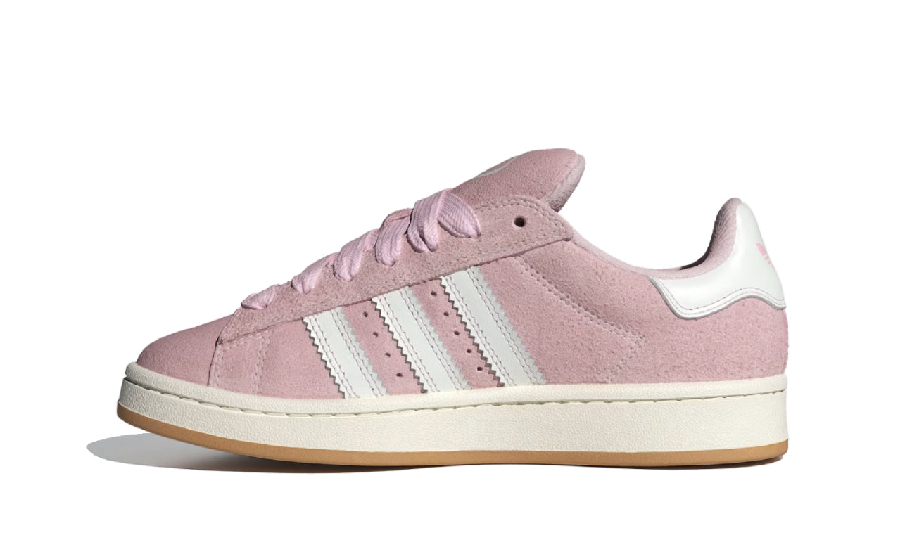 Estas zapatillas adidas Campus en color rosa suave combinan un estilo retro con un toque moderno y femenino. Su exterior está confeccionado en gamuza de alta calidad, con las clásicas tres franjas en blanco a los costados y una suela de goma color crema con acabado tipo “gum” en la parte inferior. El logotipo de Adidas Trefoil en la lengüeta, en un diseño circular blanco, aporta un detalle distintivo y contemporáneo.