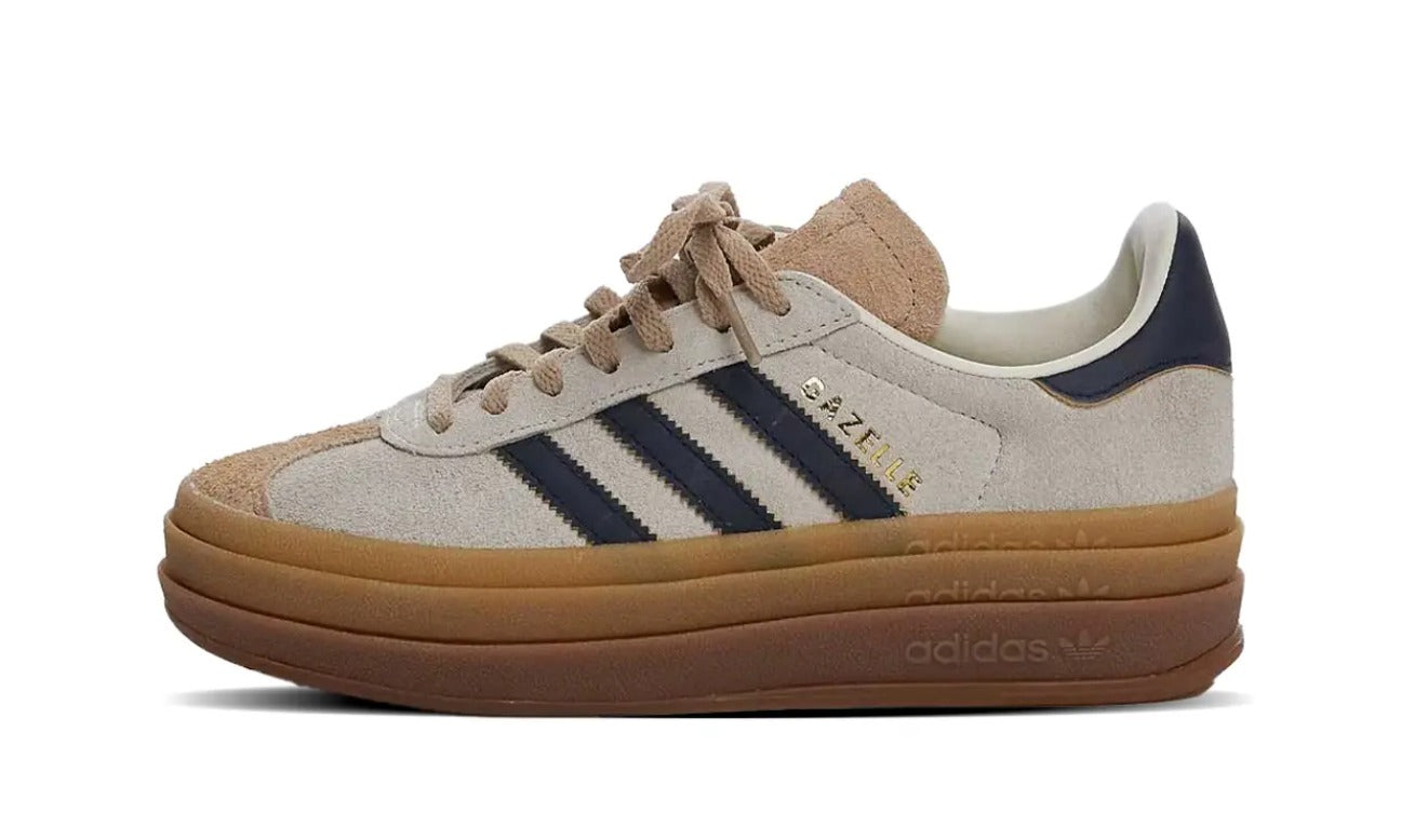 Con un lujoso diseño en tonos tierra, las adidas Gazelle Bold se presentan en un elegante color azul marino. Este calzado de estilo de vida para mujer presenta una parte superior de gamuza de color crema con superposiciones marrones texturizadas en la puntera y la lengüeta. Los detalles en azul marino animan las 3 rayas dentadas en los costados, que complementan las lengüetas de cuero del talón y el estampado del trébol de adidas. Una etiqueta dorada con la palabra "Gazelle" decora el exterior lateral, una característica distintiva de este calzado para terraza favorito de los fanáticos. Inspirada en las zapatillas de plataforma, la suela de goma se eleva tres capas para brindar una mayor comodidad y un estilo sofisticado.