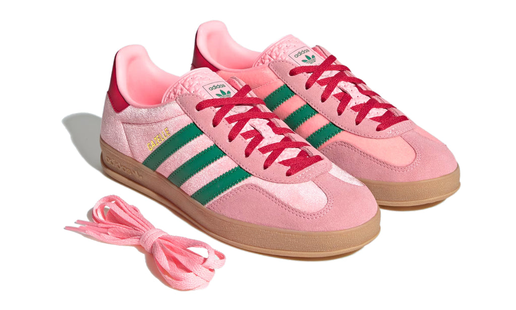 adidas Gazelle Indoor Pink Velvet presenta una parte superior de terciopelo afelpado en Glow Pink, que le da al calzado un aspecto suave y distintivo. Las capas de gamuza en Court Green brindan un contraste texturizado al tiempo que refuerzan la durabilidad de la zapatilla. La clásica silueta de perfil bajo se completa con una suela exterior de goma, que ofrece un agarre y un soporte confiables para una variedad de actividades.