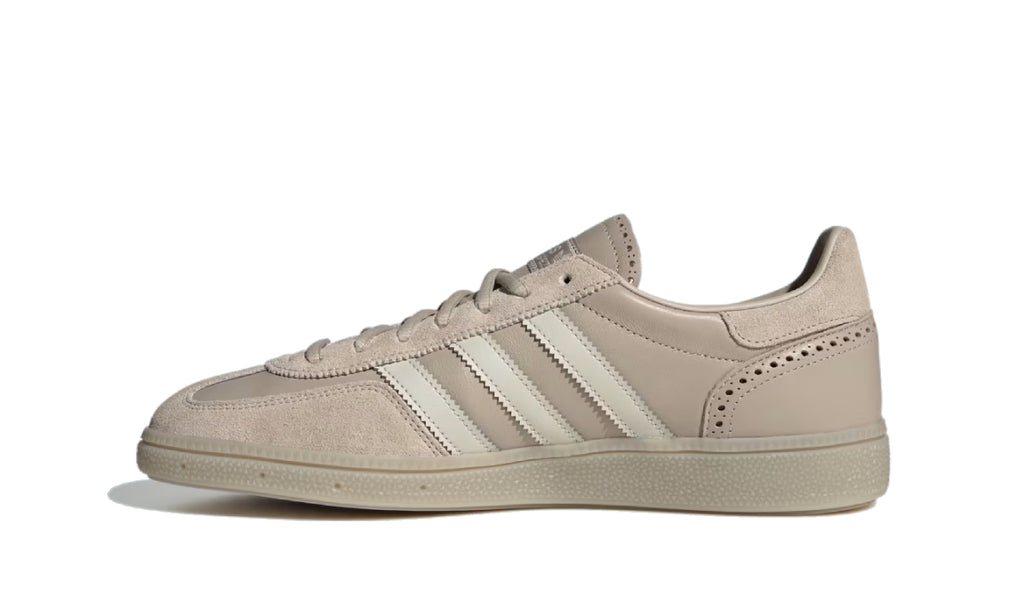 adidas Hanball Spezial Wonder Beige Alumina, un modelo clásico con un diseño sencillo y elegante. La parte superior está hecha de materiales combinados, con una mezcla de cuero suave y gamuza, lo que le da un toque de textura y sofisticación. Los tres icónicos tiras de Adidas en color blanco contrastan perfectamente con el tono beige claro del zapato. Es una opción versátil que se adapta a distintos estilos, ofreciendo tanto comodidad como un diseño atemporal. Ideal para aquellos que buscan una prenda casual y de alta calidad.