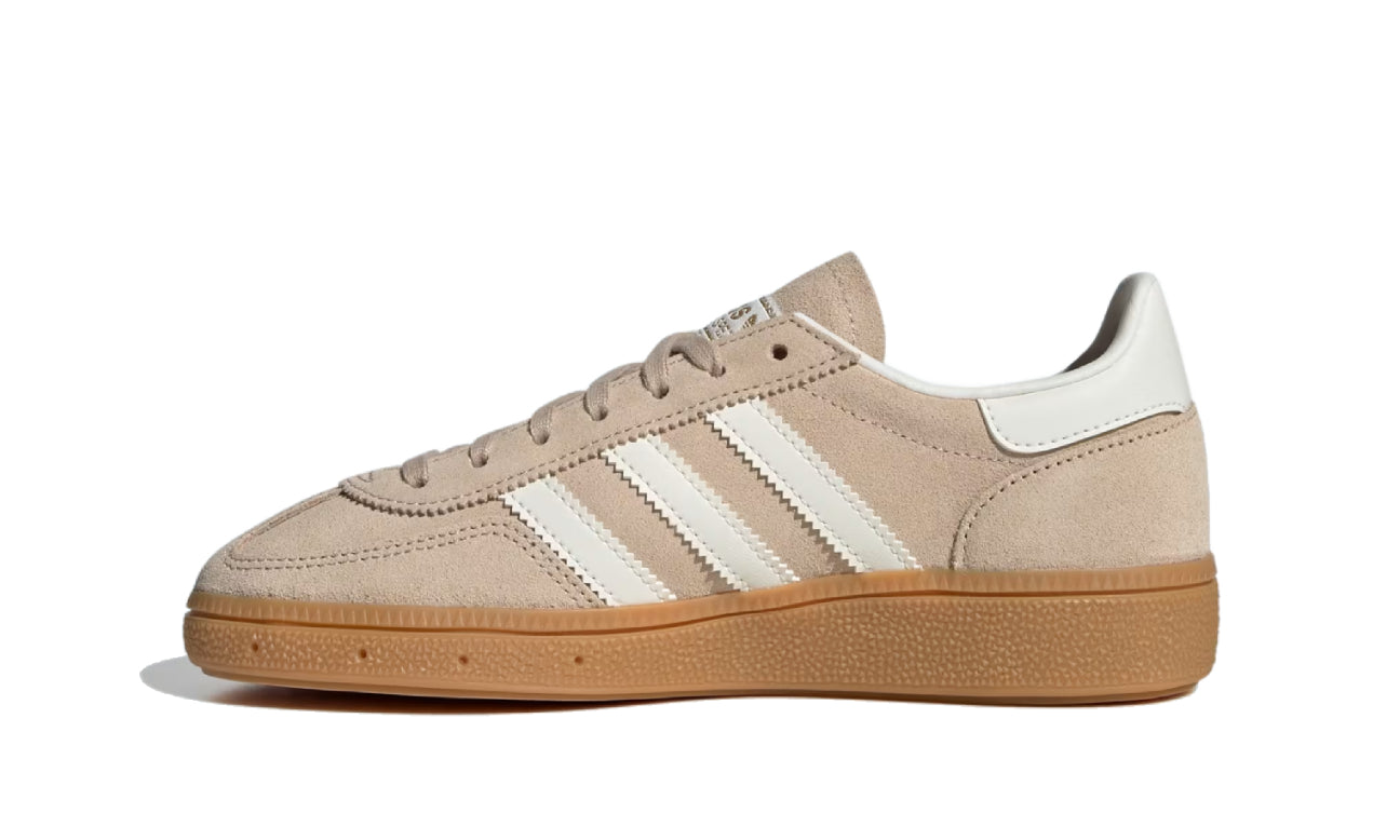 adidas Handball Spezial “Magic Beige Off White Gum” combina el encanto retro con una elegancia moderna. Inspirada en el calzado de los jugadores de balonmano de los años 80, esta versión luce una parte superior de ante suave en tono beige mágico, complementada con las tres franjas en blanco roto para un contraste sutil y refinado.