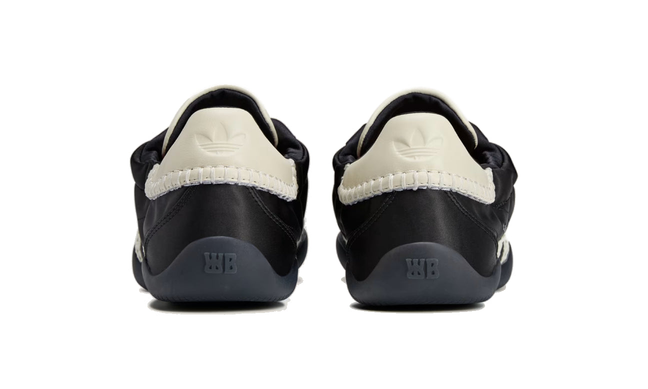 Este modelo luce una parte superior de satén negro con las icónicas 3 Franjas en tono marfil, aportando contraste y sofisticación. Las costuras sobredimensionadas en el talón y la puntera en forma de “T” rinden homenaje a los clásicos de adidas. Los logotipos compartidos en la lengüeta y la plantilla refuerzan la colaboración, mientras la suela plana de goma completa un diseño minimalista y versátil, ideal tanto para la pasarela como para el día a día urbano.