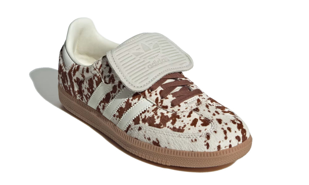 El adidas Samba LT Cow Print “Brown” reinventa un clásico con un toque atrevido y divertido. Su parte superior de pelo sintético presenta un estampado de vaca en tonos marrón y blanco, combinado con las icónicas 3 bandas en cuero blanco. La lengüeta plegable y el talón de cuero aportan un acabado limpio, mientras que la suela de goma mantiene el encanto retro y la tracción característica. Un modelo que mezcla textura, nostalgia y estilo contemporáneo a la perfección.