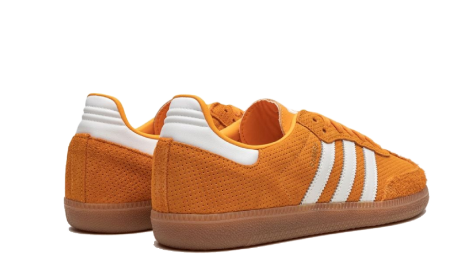 El Adidas Samba OG Orange Rush Gum es un emblemático calzado que destaca por su diseño atemporal. Fabricado en cuero de alta calidad, presenta un color naranja vibrante que aporta energía a cualquier atuendo. Este modelo se complementa con la clásica suela de goma, que proporciona durabilidad y confort inigualable. Es una combinación perfecta de estilo retro y funcionalidad moderna, ideal para aquellos amantes del estilo urbano que buscan un calzado único.