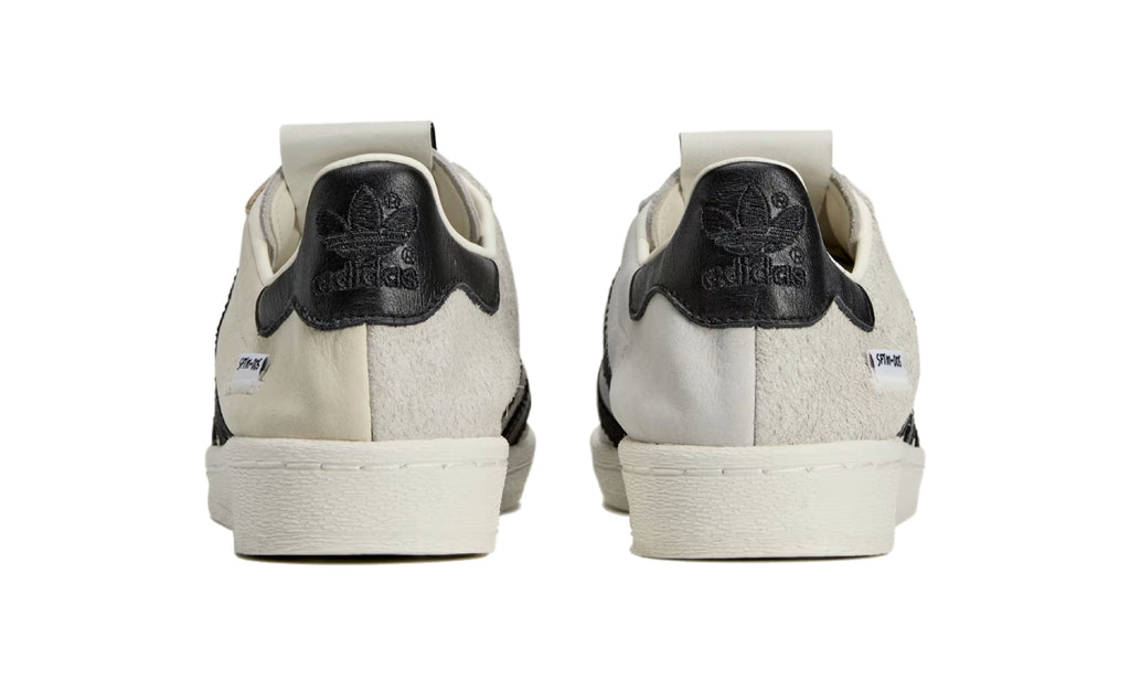 Esta edición en tonos neutros presenta una parte superior de cuero blanco roto y ante texturizado para un diseño asimétrico, contrastado por las 3-Stripes y pestañas del talón en cuero negro. La clásica puntera de goma refuerza la parte frontal, fiel al icónico estilo de baloncesto retro. El distintivo SFTM-005 adorna el foxing lateral, complementando el co-branding en la lengüeta, talón y plantilla. La suela de goma con dibujo de espiga grueso garantiza una excelente tracción. Este par llega en una caja personalizada, como en colecciones previas de SFTM.
