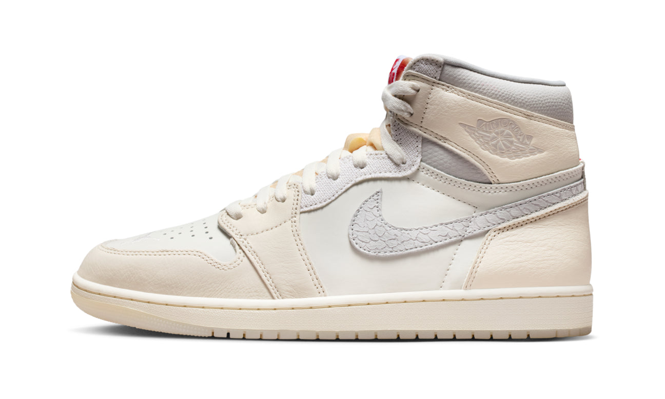Las Air Jordan 1 High OG “Sail Elephant Print Swoosh” celebran el 40º aniversario del modelo con un diseño que rinde homenaje a varios clásicos de la saga Jordan. Su estética relajada se apoya en una paleta neutra y en materiales mixtos con acabados de efecto envejecido.