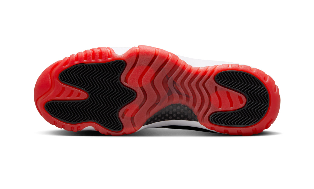 Construida con malla negra balística y el clásico mudguard de charol brillante, mantiene la esencia del modelo original. La entresuela blanca contrasta con la suela translúcida roja, un sello distintivo del diseño “Bred”. En su interior, una unidad Nike Air encapsulada garantiza amortiguación ligera y comodidad, mientras la tracción y durabilidad siguen al nivel de la élite del Jumpman.