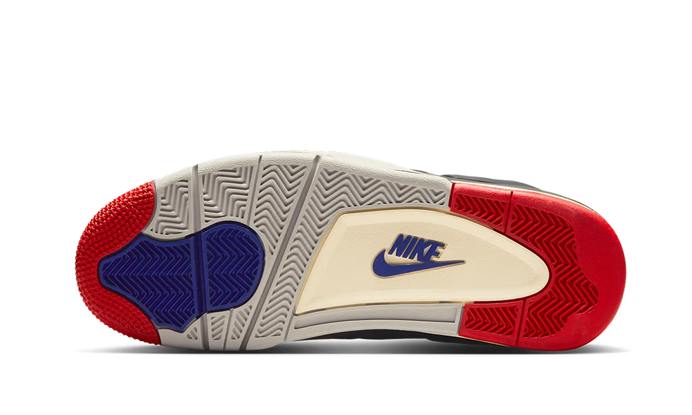 Las Air Jordan 4 Rare Air presentan una base de nobuk negro, con detalles en azul, rojo y gris por toda la silueta. La entresuela color crema y la marca NIKE en la suela realzan el diseño.