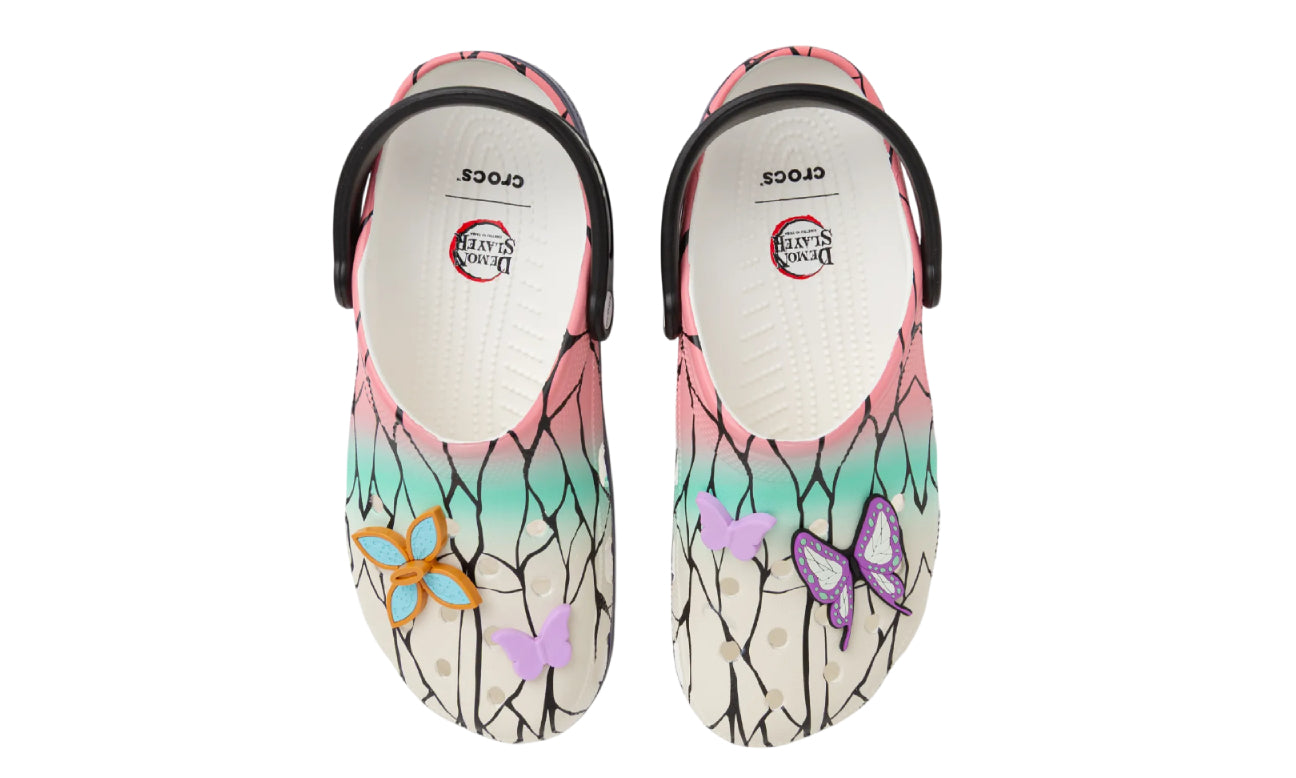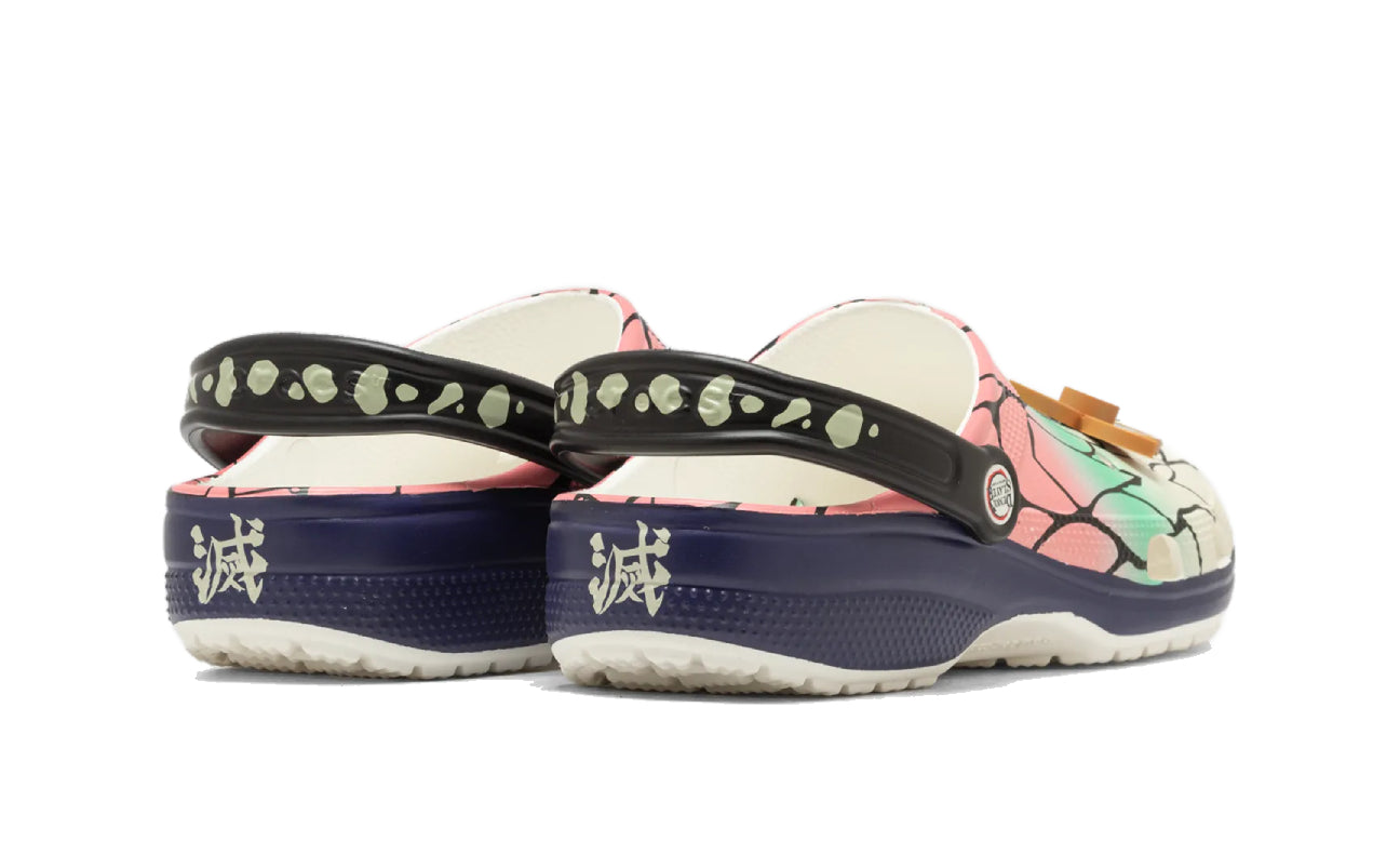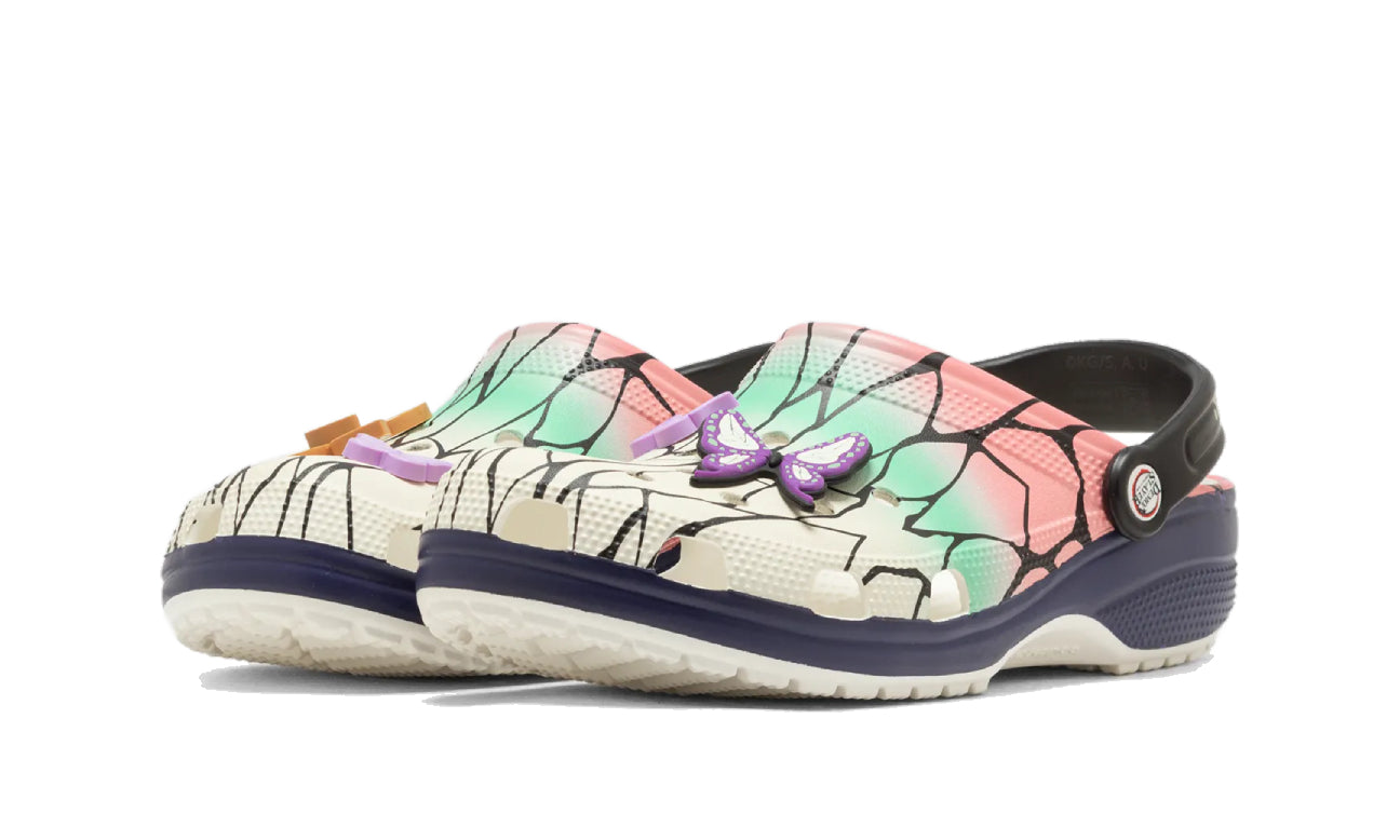 El Demon Slayer x Crocs Classic Clog “Shinobu” se inspira en la Pilar del Insecto, Shinobu Kocho, y luce un diseño delicado y lleno de color. Su base de espuma Croslite muestra un degradado en tonos rosa, verde menta y crema, con detalles que evocan las alas de mariposa de su capa. Los Jibbitz exclusivos incluyen mariposas y la tsuba de su katana, mientras que los logotipos compartidos decoran la plantilla y las correas. Un kanji japonés en la parte trasera añade un toque distintivo. La entresuela azul marino garantiza comodidad duradera, perfecta para fans del anime y del estilo casual.