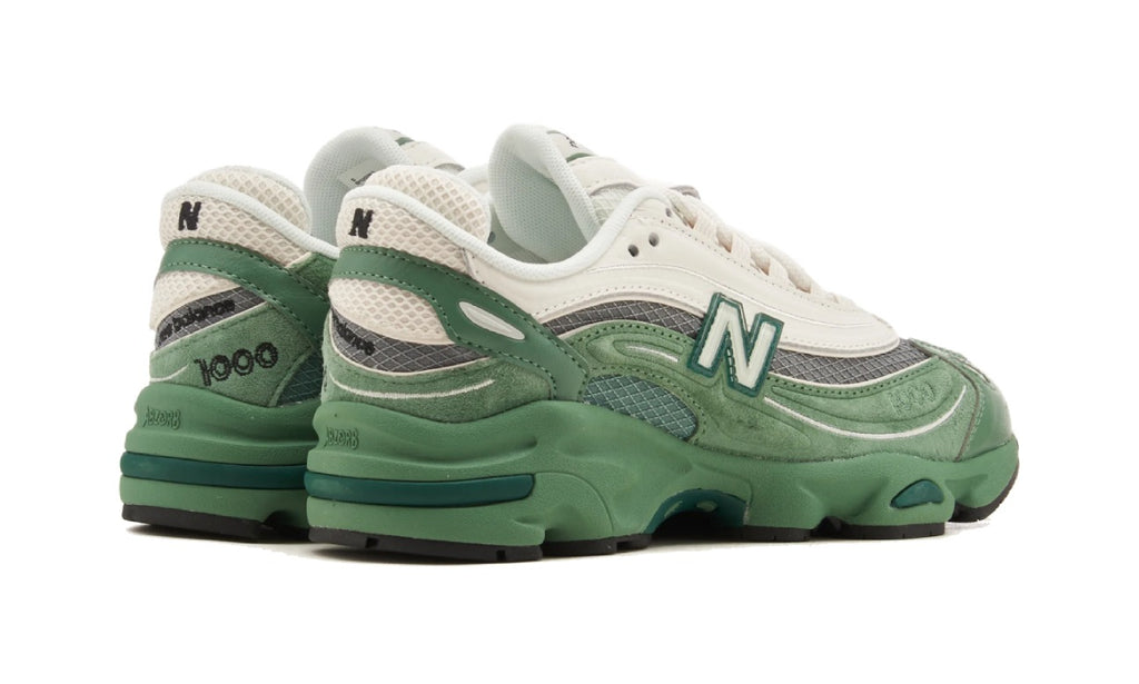 NB 1000 mantienen su estética clásica con una combinación de cuero, malla antidesgarro y materiales de gamuza en tonos blanco, gris y verde, manteniéndose fieles a su herencia. Los elementos icónicos de la marca, como los logotipos "N" en los costados y las marcas "1000" en varias partes de la zapatilla, rinden homenaje a sus raíces. Al combinar una entresuela de espuma verde con una suela exterior de goma negra, el diseño fusiona a la perfección la tradición con la innovación para lograr un atractivo atemporal pero contemporáneo.