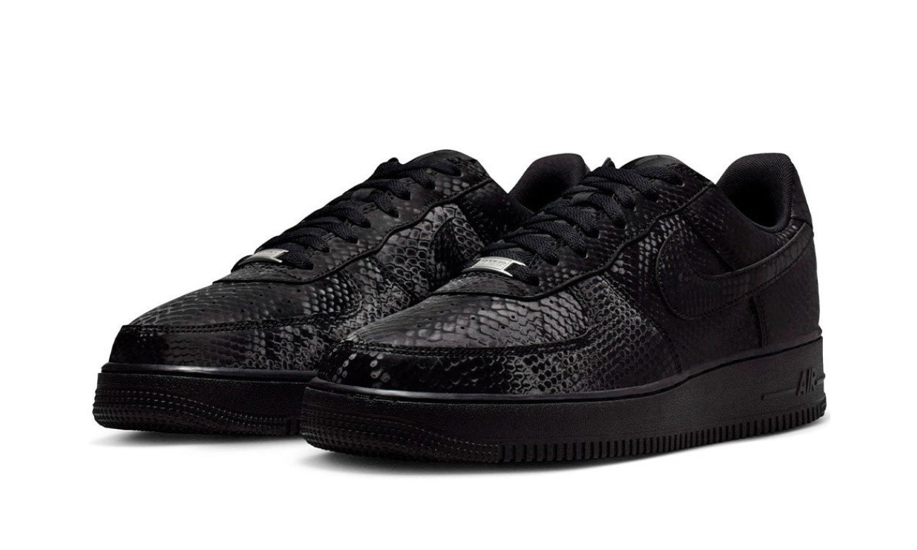 El Kobe Bryant x Nike Air Force 1 Low “Black” rinde homenaje al legado del Black Mamba con una silueta que refleja su intensidad y elegancia. Fabricado en cuero negro con acabado de piel de serpiente, este modelo captura el espíritu competitivo que definió a Kobe dentro y fuera de la cancha.