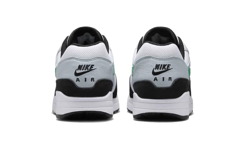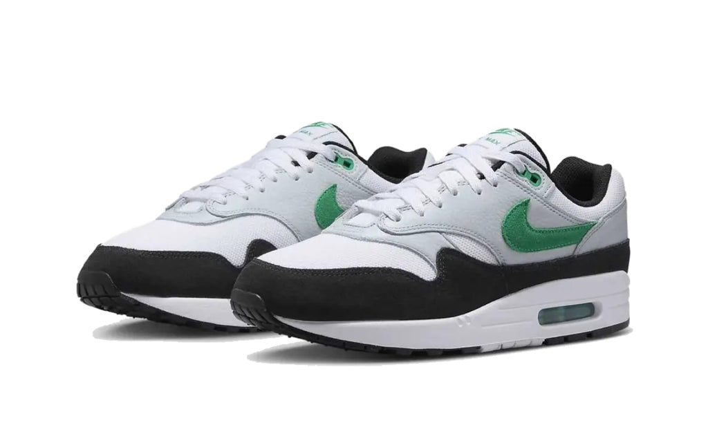 El modelo combina malla blanca con ante verde y gris claro, manteniendo el bloqueo de color OG que caracteriza al ícono de 1987. Los Swooshes, ojales y logotipos siguen el mismo tono vibrante, mientras la entresuela blanca de espuma PU incorpora la unidad Air visible en el talón y otra encapsulada en el antepié. Una suela tipo waffle en negro, blanco y verde completa el diseño con un toque fresco y atemporal.