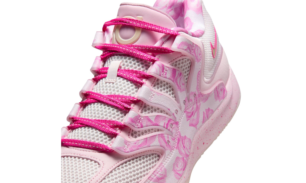 El patrón de rosas adorna los ojales y el forro interior, mientras que el Swoosh en tono “Coconut Milk” y la media suela moteada rosa aportan un toque sofisticado. Su construcción ligera y transpirable garantiza rendimiento en la cancha y estilo fuera de ella. Más que unas zapatillas, la KD 18 “Aunt Pearl” representa familia, memoria y superación, un tributo que trasciende el baloncesto.