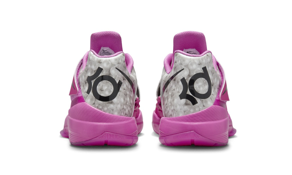 Inspiradas en el cariño de Durant por su difunta tía, que luchó contra el cáncer de pulmón, las KD 4 “Aunt Pearl” conmemoran su influencia protectora. El recuerdo de la tía Pearl está grabado con un gráfico de perla en la zapatilla, que simboliza la campaña Think Pink en apoyo a los pacientes con cáncer de mama.