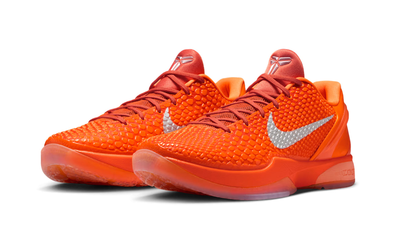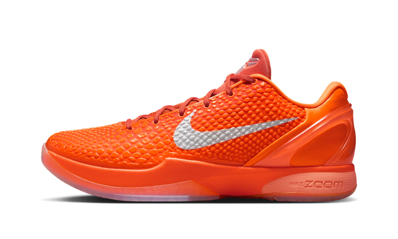 La Nike Kobe 6 Protro “Total Orange” celebra el legado de la Mamba Mentality en el 15º aniversario del icónico modelo. Inspirada en una sudadera que Kobe Bryant lució junto a su hija Gigi, esta versión destaca por su intenso tono naranja, evocando los colores del logo de la WNBA.