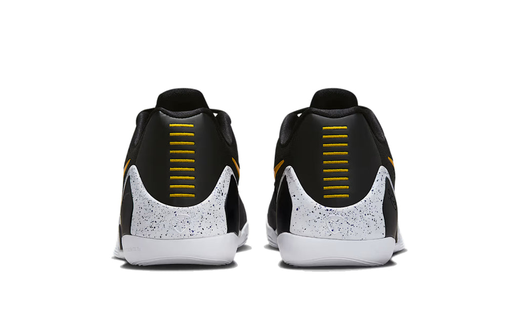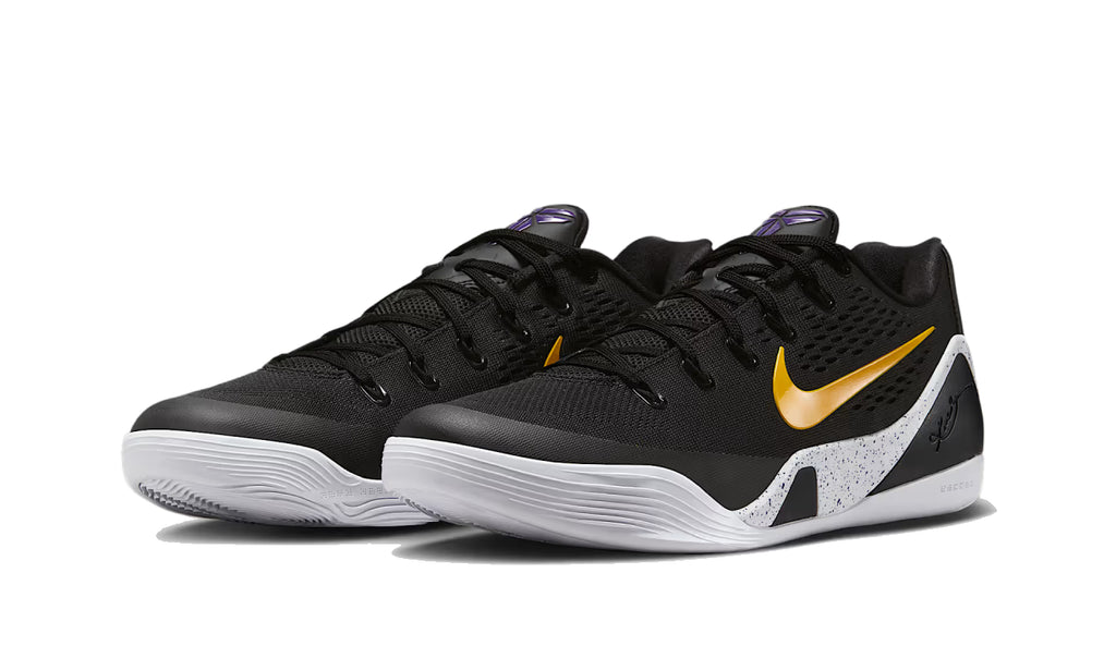 La Nike Kobe 9 EM Protro “Black University Gold” rinde homenaje al espíritu de los Los Angeles Lakers con un diseño inspirado en los uniformes “Hollywood Nights”. Su parte superior de malla negra con refuerzos fuse refleja el apodo de Kobe, Black Mamba, mientras que el Swoosh dorado y el logo púrpura en la lengüeta evocan los colores clásicos del equipo angelino. Las nueve puntadas en el talón recuerdan su regreso tras la lesión de Aquiles, y los detalles en braille “Masterpiece” celebran su legado. La entresuela React ofrece amortiguación superior, perfecta para dominar la cancha con estilo y precisión.