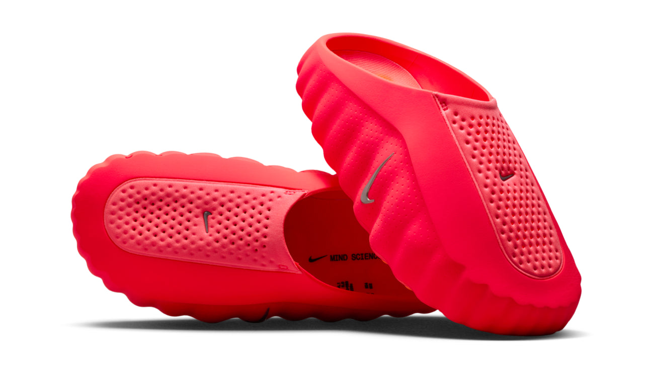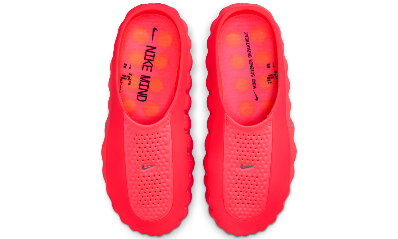 Nike Mind “Solar Red” llevan el calzado de recuperación a otro nivel con un diseño intenso y futurista. Su acabado en rojo solar se combina con Swooshes plateados reflectantes, logrando un look llamativo y muy reconocible.