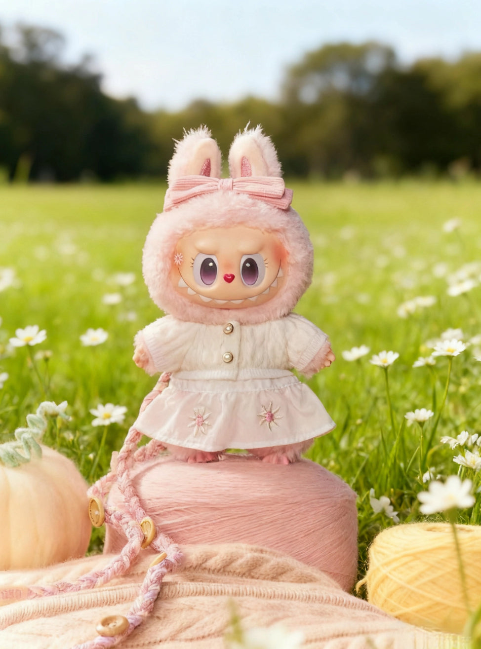 ¡Déjate envolver por la calidez del otoño con Mokoko de la serie Labubu The Monsters: Fall into Sweaters! Esta figura colgante de vinilo con detalles de felpa, exclusiva de Pop Land, presenta a Mokoko con un encantador atuendo otoñal. Viste un suéter tejido en blanco con botones dorados y una falda bordada con flores rosadas, transmitiendo una estética acogedora y delicada. Su capucha de conejito con orejitas suaves y un gran lazo rosado completa el look adorable, mientras su expresión traviesa y ojos brillantes mantienen el estilo único de Labubu.