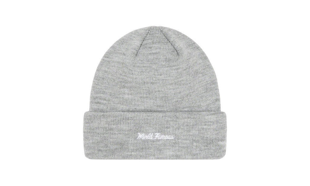 EL Supreme New Era Beanie Logo Box (FW22) Heather Grey reanuda la forma habitual de tazas Supreme en un diseño en Acrílico gris chino. Notamos a los fieles Logotipo de caja en blanco y negro Alojado en la parte posterior en la parte delantera mientras marca New Era Trono al lado. Encontramos en la parte trasera el registro caligrafiado "Mundialmente famoso".