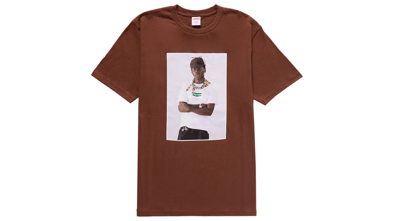 Lanzamiento exclusivo de Supreme con una fotografía de Tyler The Creator vistiendo una camiseta con el icónico Box Logo verde. Hecha de algodón 100%, en color marrón, esta prenda combina estilo urbano con actitud irreverente. Una pieza esencial para coleccionistas y amantes del streetwear auténtico.
