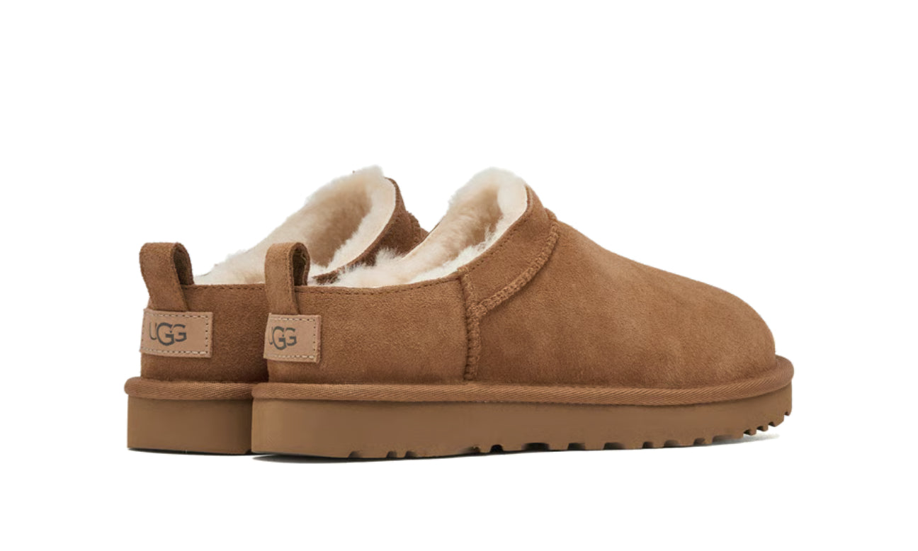 El UGG Classic Micro Chestnut combina tradición y modernidad en un diseño atemporal. Su tono castaño versátil y el exterior de ante premium aportan un toque elegante y fácil de combinar, mientras que su silueta baja añade un aire contemporáneo.